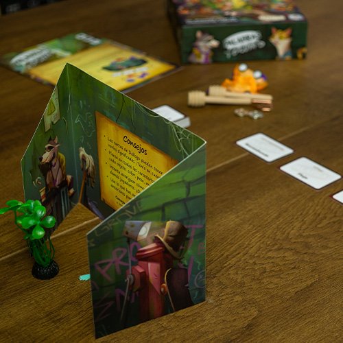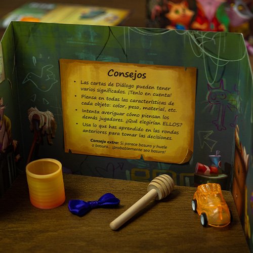 Palabras basura es un juego cooperativo de asociación de palabras en el que mapaches y gatos intentan comunicarse entre ellos emparejando cartas de diálogo y extraños objetos que han encontrado en la basura. Trabajad en equipo para superar las rondas, que serán progresivamente más difíciles, y así ganar la partida.