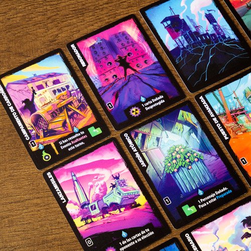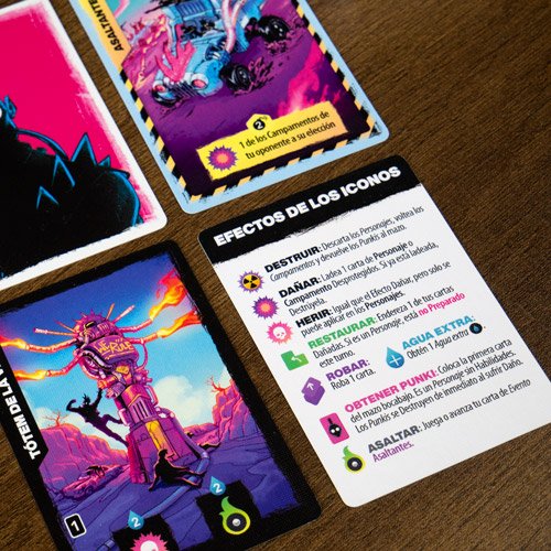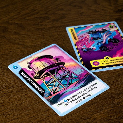El recurso principal de este juego es el Agua. La gastarás para jugar tanto Personajes como Eventos y para usar las Habilidades de las cartas que ya tienes en la mesa. Los Personajes son los que te ayudan a defender tus Campamentos con sus valiosas Habilidades, mientras que los Eventos son poderosos Efectos que tardan en activarse.